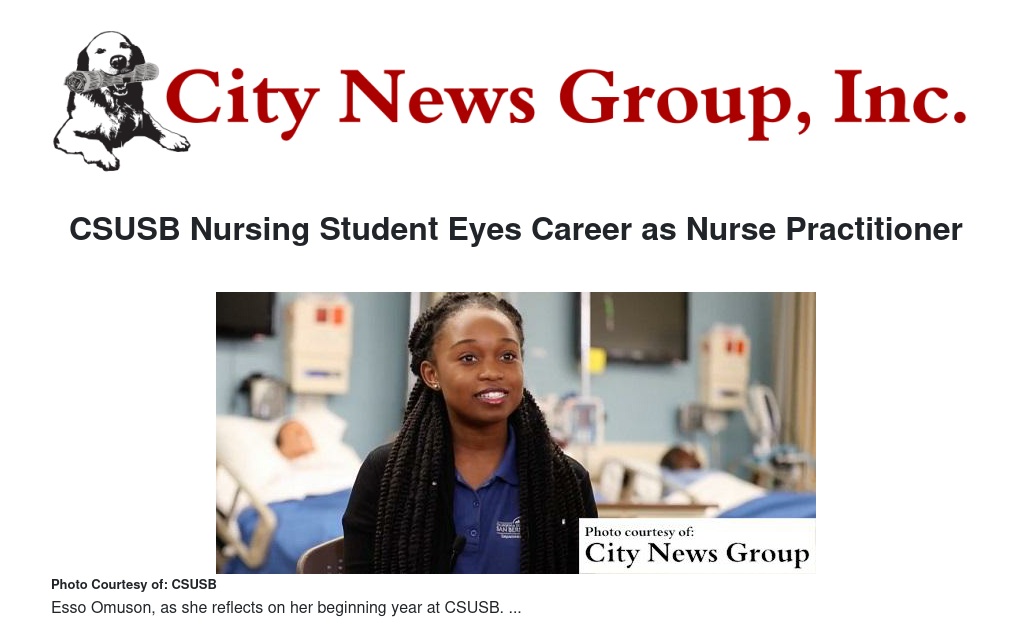 San Bernardino>> Esso Omuson, who will graduate in June from California State University, San Bernardino, with a bachelor of science degree in nursing, thought back to when she was accepted into the Cal State San Bernardino nursing program as a freshman.