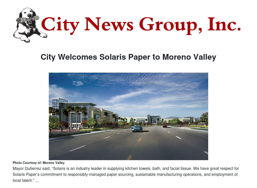City Welcomes Solaris Paper to Moreno Valley by Ariel Dun - City News Group, Inc.