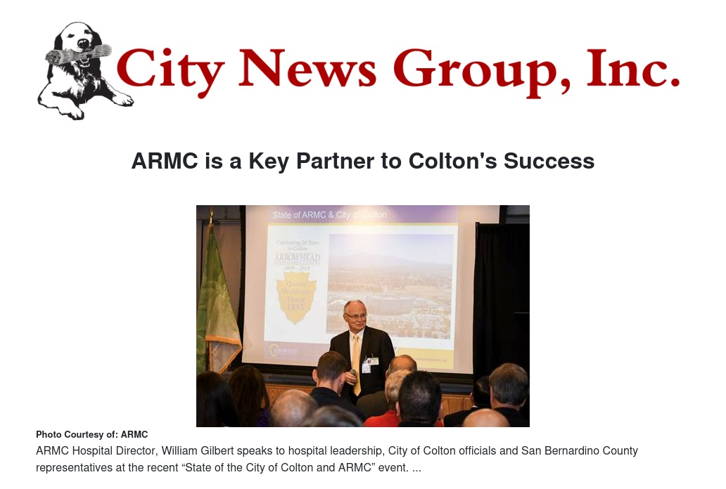 Arrowhead Regional Medical Center (ARMC) and the City of Colton recently brought together hospital leadership, City of Colton officials and San Bernardino County representatives for the “State of the City of Colton and ARMC” event. Taking place at the Medical Center, key speakers were City of Colton Mayor Frank J. Navarro and Hospital Director, William Gilbert.
