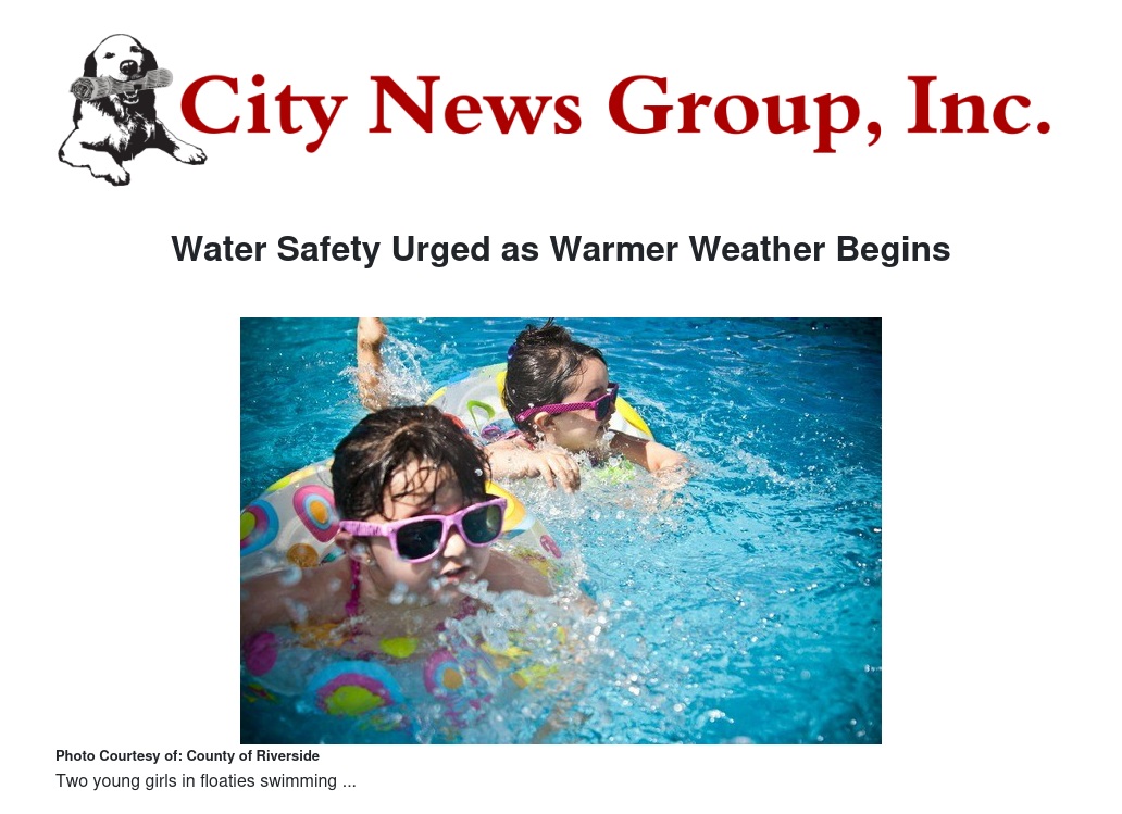 Water Safety Urged as Warmer Weather Begins by Stella Pierce - City News Group, Inc.