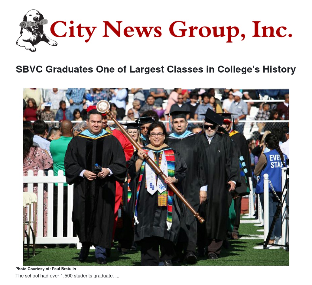SBVC Graduates One of Largest Classes in College's History by Paul Bratulin - City News Group, Inc.