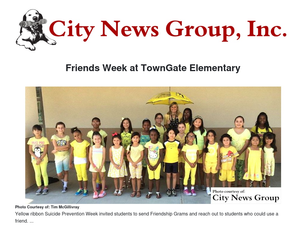 Yellow Ribbon Suicide Prevention Week brought a festive recognition of friends at TownGate Elementary.