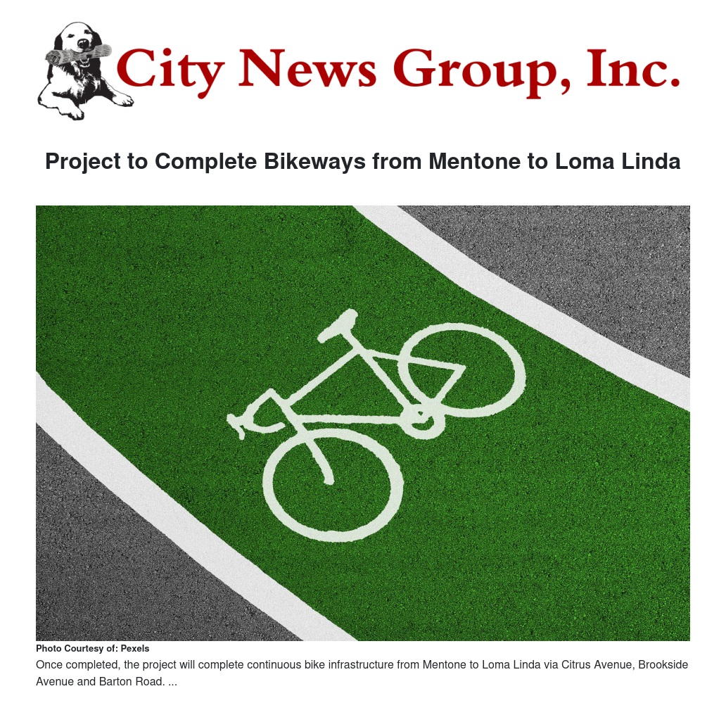 Project to Complete Bikeways from Mentone to Loma Linda by Carl Baker - City News Group, Inc.