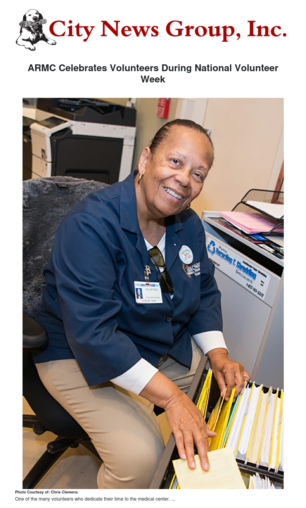 ARMC volunteers will be treated to a special reception on April 11 to thank them for their years of service and dedication to the hospital and its mission.