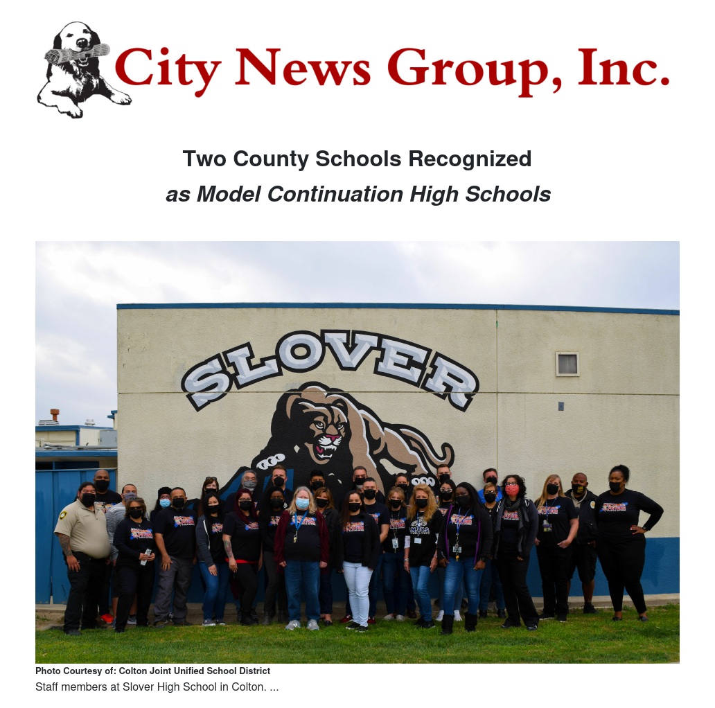 The San Bernardino County Superintendent of Schools is proud to announce that two high schools within the county were recognized as Model Continuation High Schools (MCHS) for 2022.
