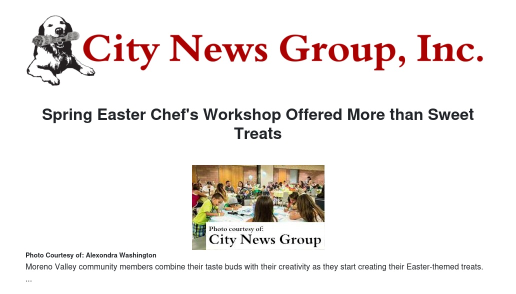 Moreno Valley Parks and Community Services Department finished up their Spring-filled activity series with a Spring Easter Chef’s Workshop at TownGate Community Center on Tuesday, March 31.