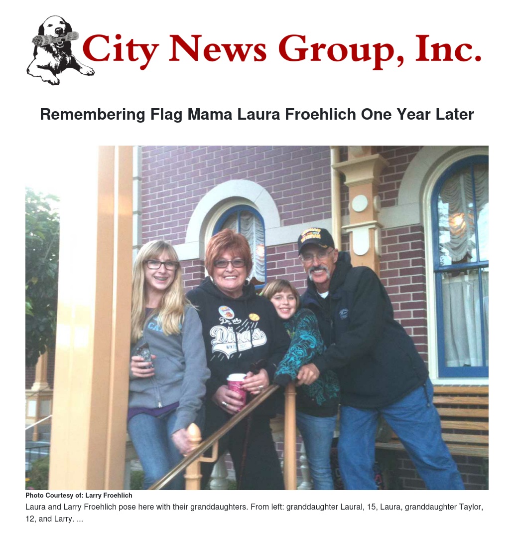 One year later, Moreno Valley looks back on the life and legacy of one of the community’s most dedicated citizens. On August 1, 2012, Laura Froehlich, known more intimately as Flag Mama because of her patriotic clothes, passed away to the shock of her community.