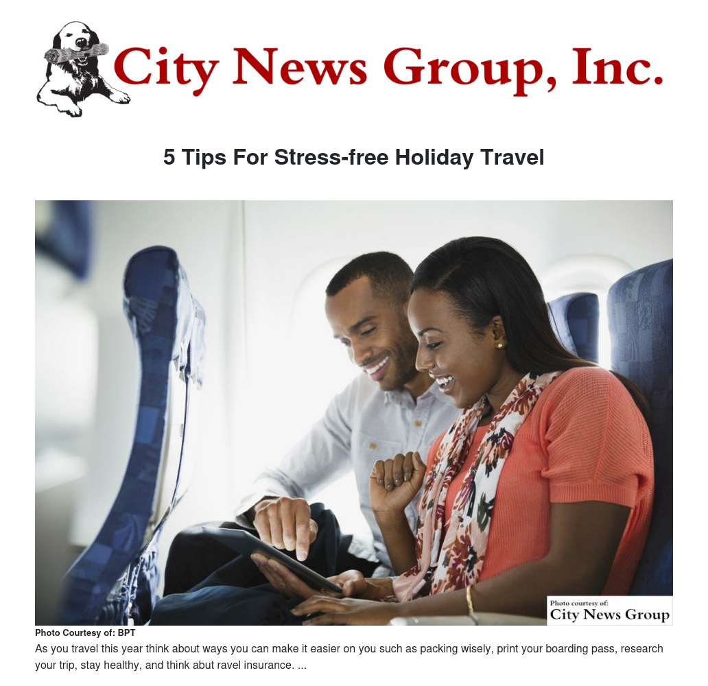 5. Protect yourself. Finally, if you didn't purchase travel insurance when you booked your flight, it may not be too late to do so. Insurance may usually be purchased up to 24 hours before your departure date and a variety of options are available. "Travelers are smarter than ever when it comes to finding great travel deals, but some are still forgetting to protect themselves financially with travel insurance," said Jeff Rutledge, CEO, AIG Travel. "It's important travelers prepare for unexpected events, especially during the holidays, such as trip cancellation, interruption, lost or stolen luggage, and emergency medical issues." Many travel insurance products also offer comprehensive support services for travelers. For example, most offerings in the Travel Guard suite of products from AIG Travel feature concierge services, which are available as soon as a policy is purchased and may provide assistance for anything from event ticketing to locating a gift wrapping service.