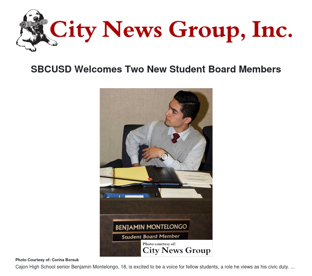 The San Bernardino City Unified School District Board of Education welcomed two new student members, who were appointed to represent the more than 51,000 students who attend school in the District.