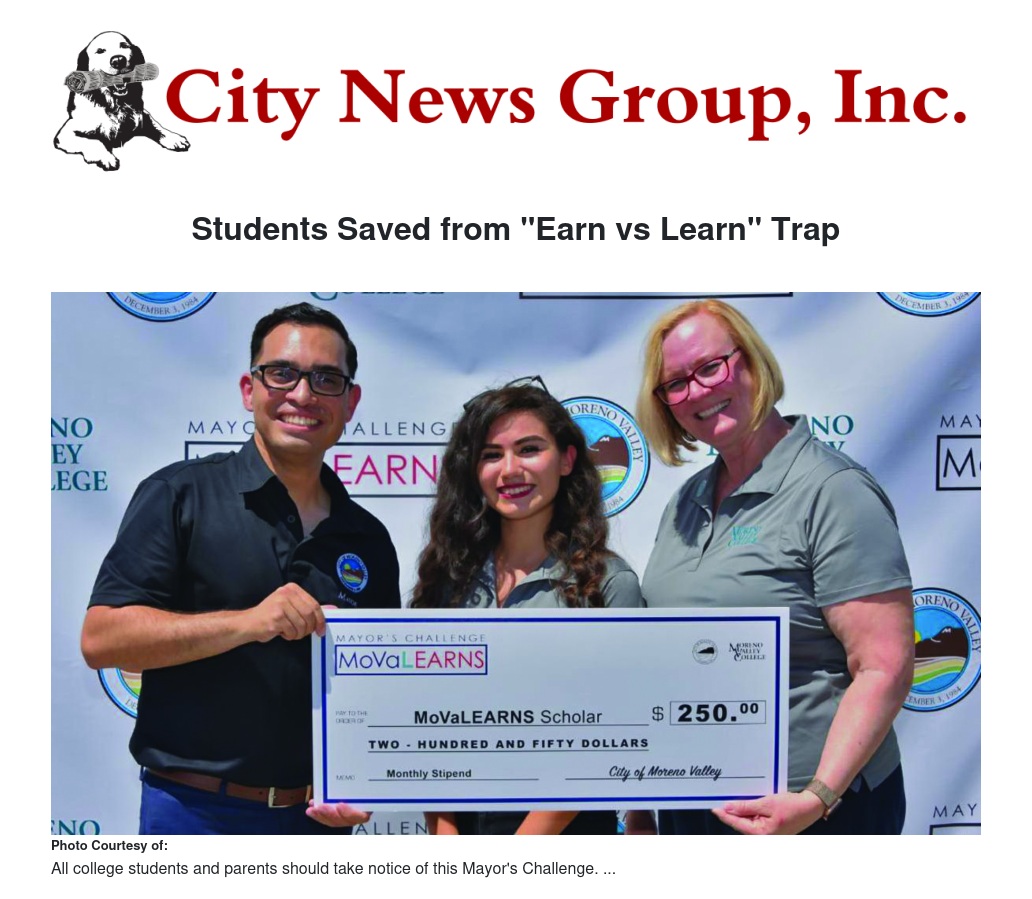 Students Saved from "Earn vs Learn" Trap by City of Moreno Valley - City News Group, Inc.