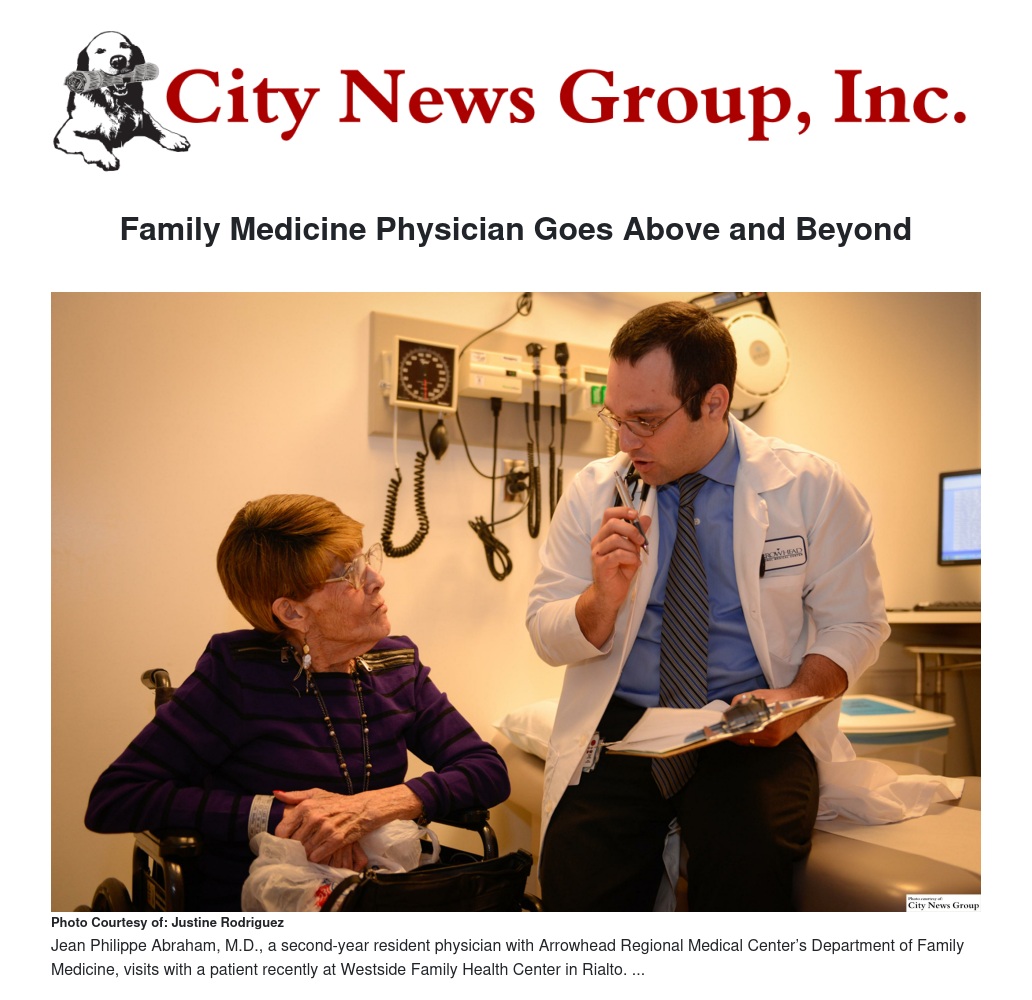 Jean Philippe Abraham, M.D., a second-year resident physician with Arrowhead Regional Medical Center’s Department of Family Medicine, recently took healthcare services to the next level during his shift at Westside Family Health Center (FHC) in Rialto.
