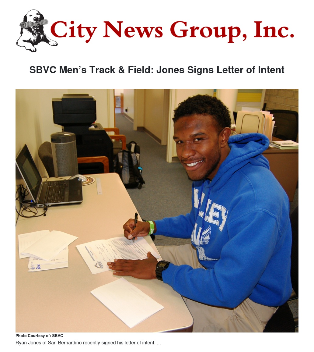 SBVC Men’s Track and Field long jumper, sophomore Ryan Jones (San Bernardino Cajon), has signed a letter of intent with Dickinson State University.