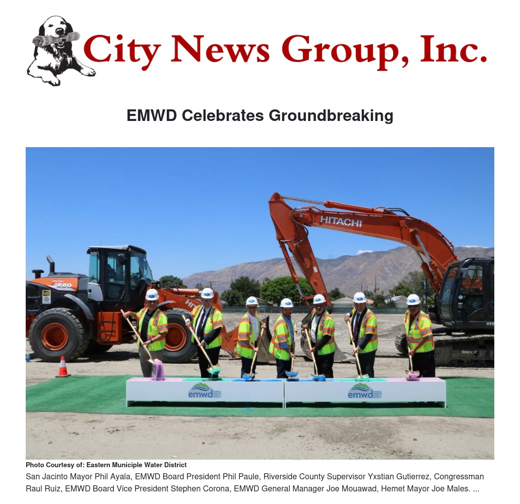 Eastern Municipal Water District (EMWD) today commemorated the groundbreaking of its new San Jacinto Valley Groundwater Treatment Facility in a ceremony attended by federal and local dignitaries.