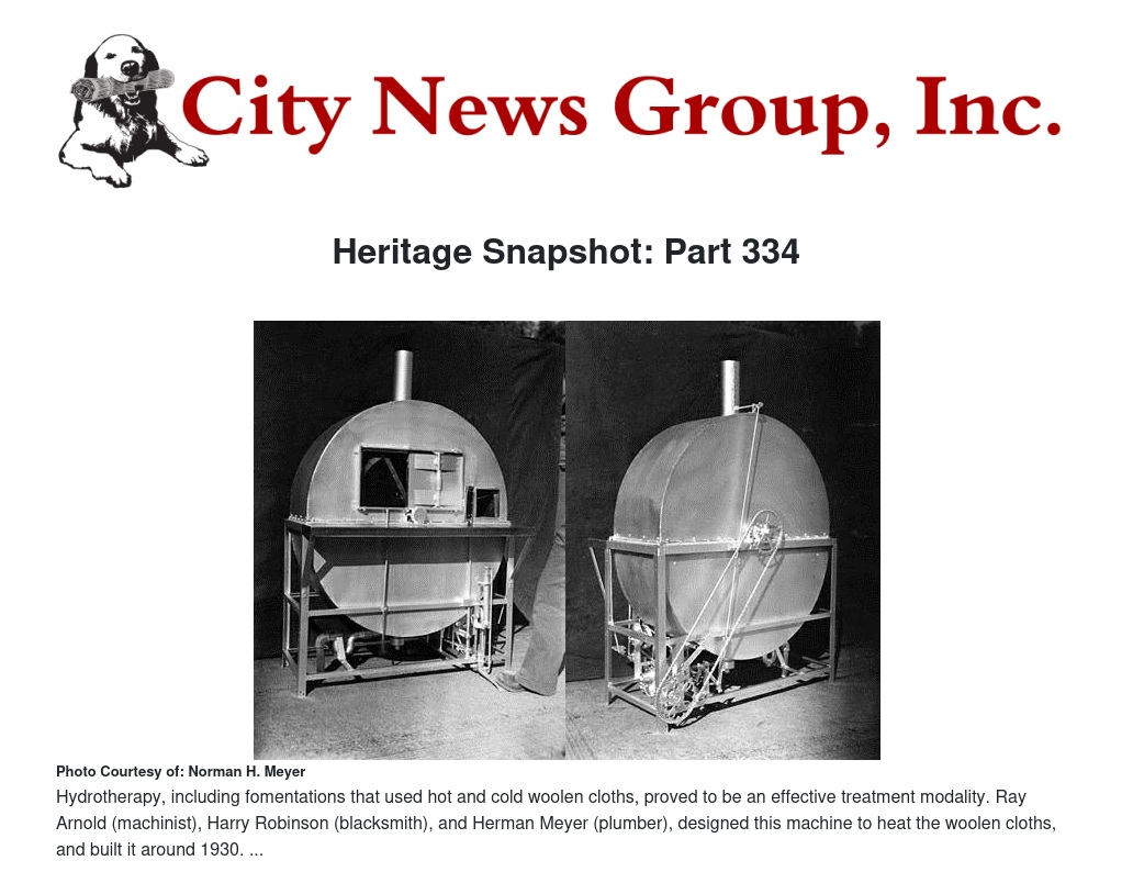 Dr. Abbott and Herman Meyer, the institution’s plumber, worked extensively to develop a system of pipes, valves, and faucets to allow the mixing of hot and cold water so that they could successfully regulate the temperature of the water.