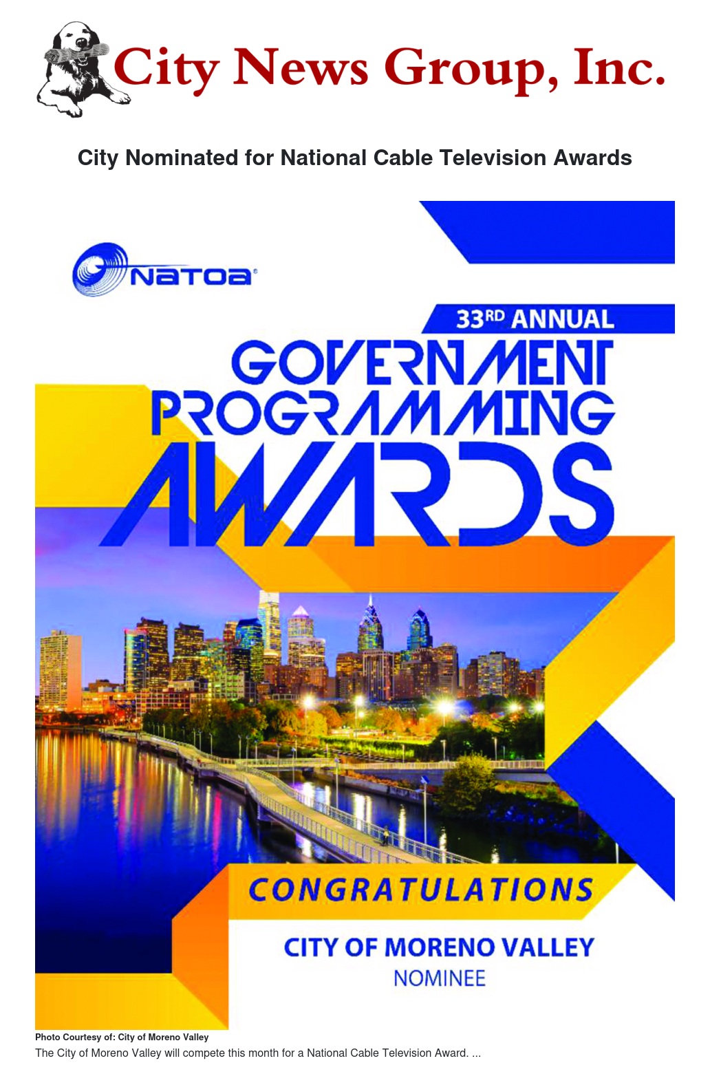 The City of Moreno Valley was nominated for four National Government Programming Awards by the National Association of Telecommunications Officers and Advisors (NATOA).