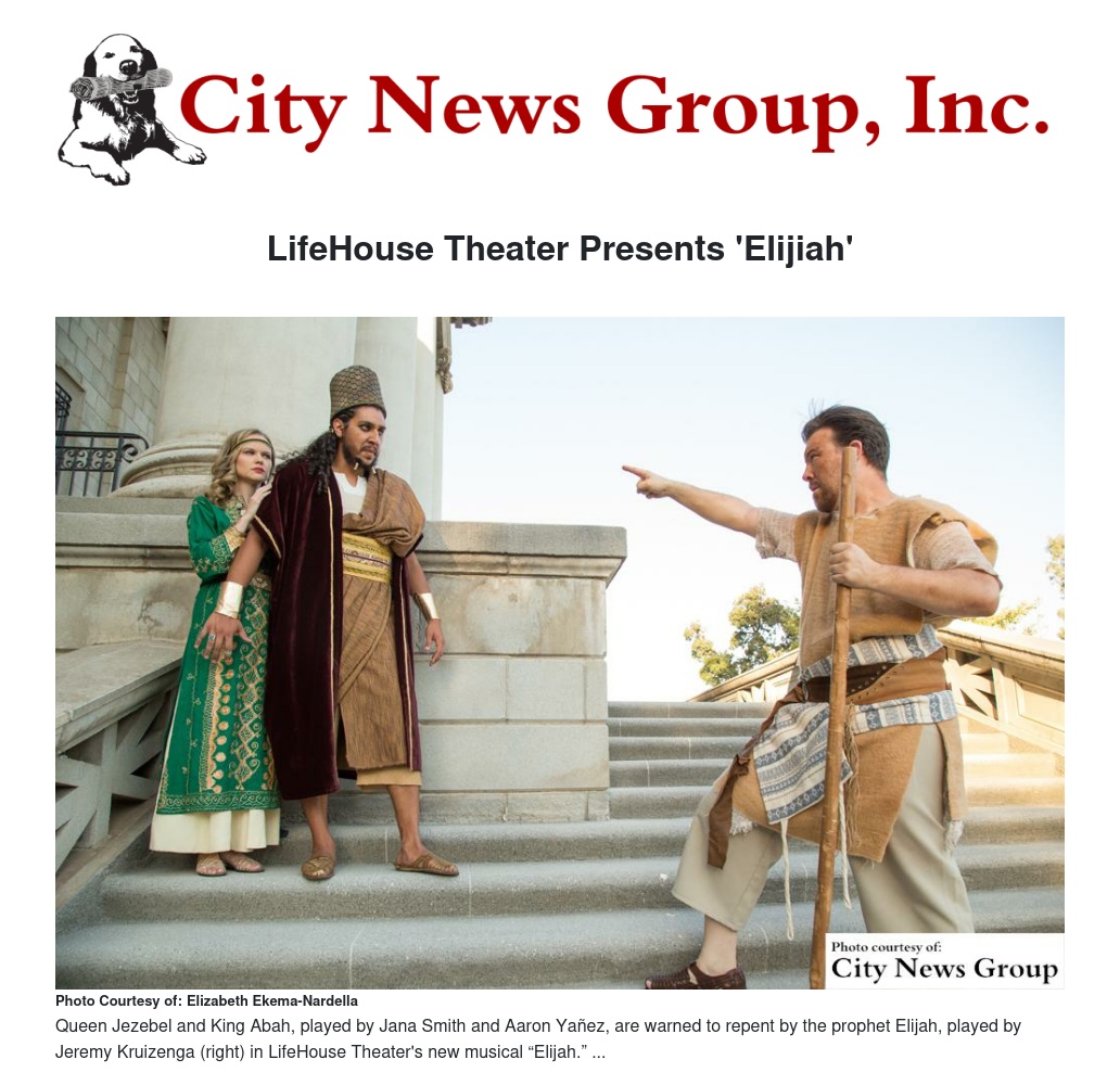 This new musical features Jeremy Kruizenga as Elijah, Aaron Yañez as King Ahab and Jana Smith as Queen Jezebel. Also featured are Garrett Goodell as Obadiah, Darryl Wheeler as Naboth, Megan Wheeler as the Widow of Zarephath, Paul Zanone as Elisha, David Hurley as Micaiah and Sarah Pearce as the Angel.