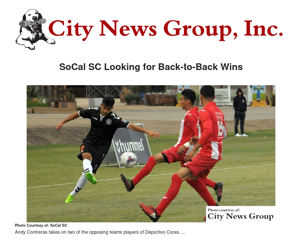 The teams already met earlier this season, with SoCal SC recording a 3-0 home win last April with forward Roonie Moreno scoring and brace and midfielder Alex Zaragoza finding the back of the net once.