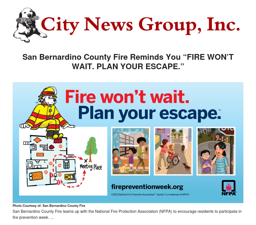 San Bernardino County Fire Reminds You “FIRE WON’T WAIT. PLAN YOUR ESCAPE.” by Cole Updike - City News Group, Inc.