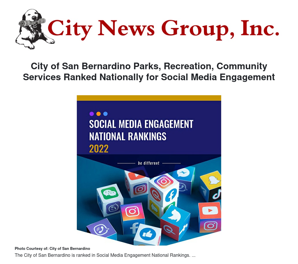 City of San Bernardino Parks, Recreation, Community Services Ranked Nationally for Social Media Engagement by Jeff Kraus - City News Group, Inc.
