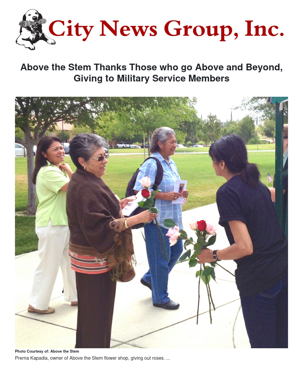 Veterans and other military service members once again this year were thanked by Above the Stem Floral Studio with flowers free of charge. This year the Redlands-based flower shop continued a tradition begun last year by giving one free flower to military service men and women, past and present, on Memorial Day. Store employees whose husbands were serving in the military decided they wanted to give back to veterans and other serving military members by giving away a free rose to each veteran who visited the shop last year.