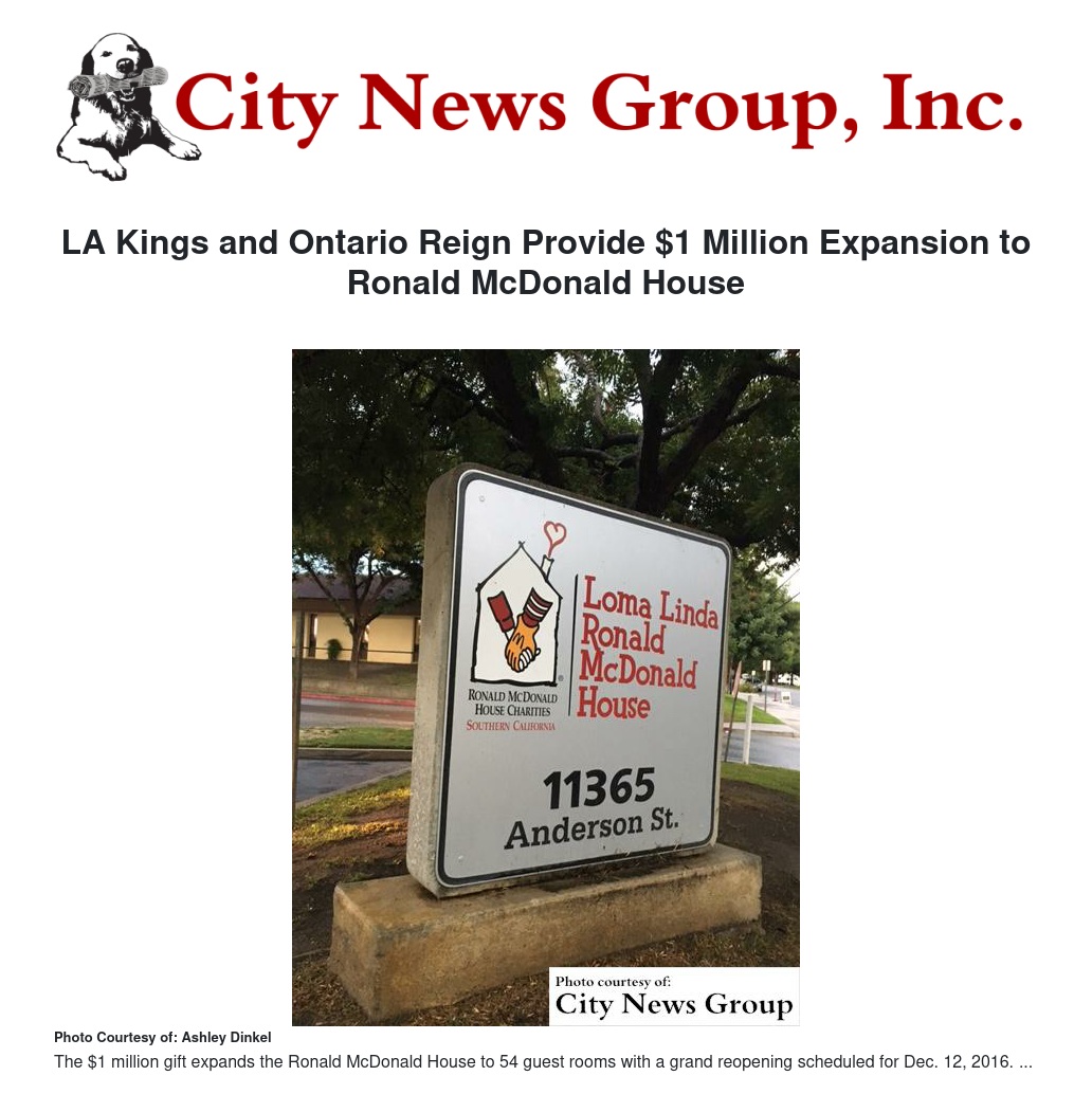LA Kings and Ontario Reign Provide $1 Million Expansion to Ronald McDonald House