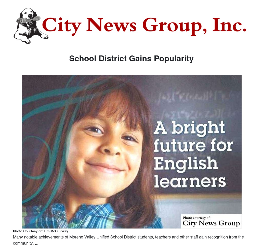 Attend any education conference or talk with state officials or leaders from other school districts and mention you’re from Moreno Valley Unified and you’re likely to get a similar response: “I keep hearing great things about you guys!”