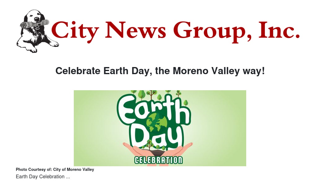 Join us on Saturday, April 20, from 10 a.m. to 1 p.m. at the Community Demonstration Garden for a fun day featuring raffles, workshops, garden tours, youth crafts, tree giveaways, and other exciting earth-friendly activities! Moreno Valley's Earth Day Celebration is a free community event.