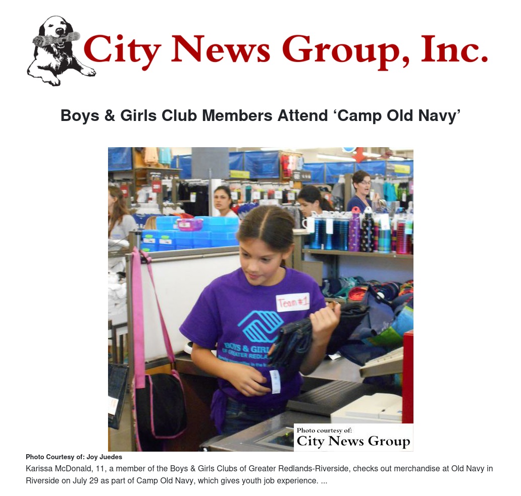 About a dozen members of the Boys & Girls Clubs of Greater Redlands-Riverside worked registers and got a behind-the-scenes look at Old Navy in Riverside on July 29.