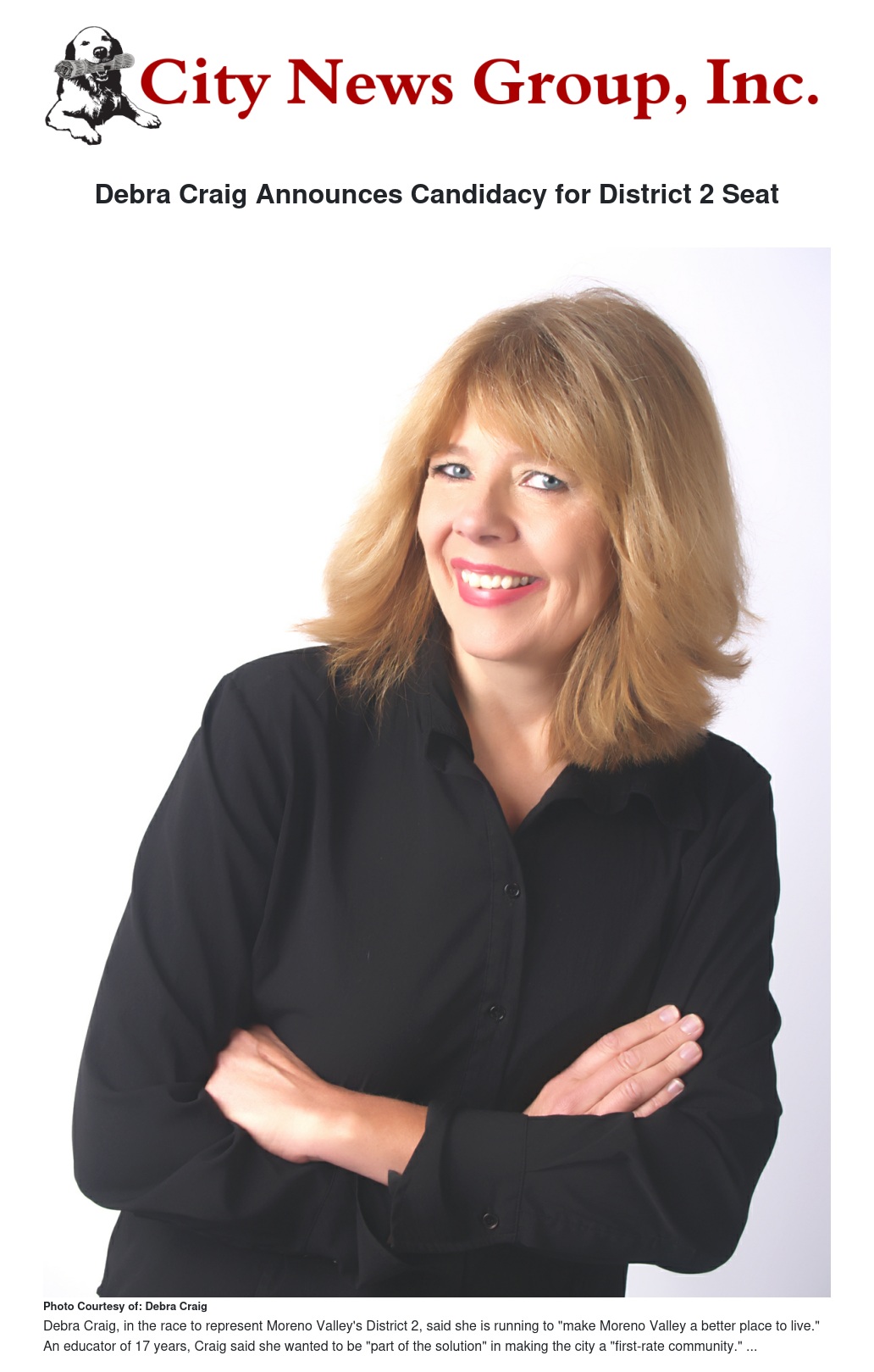 Debra Craig Announces Candidacy for District 2 Seat