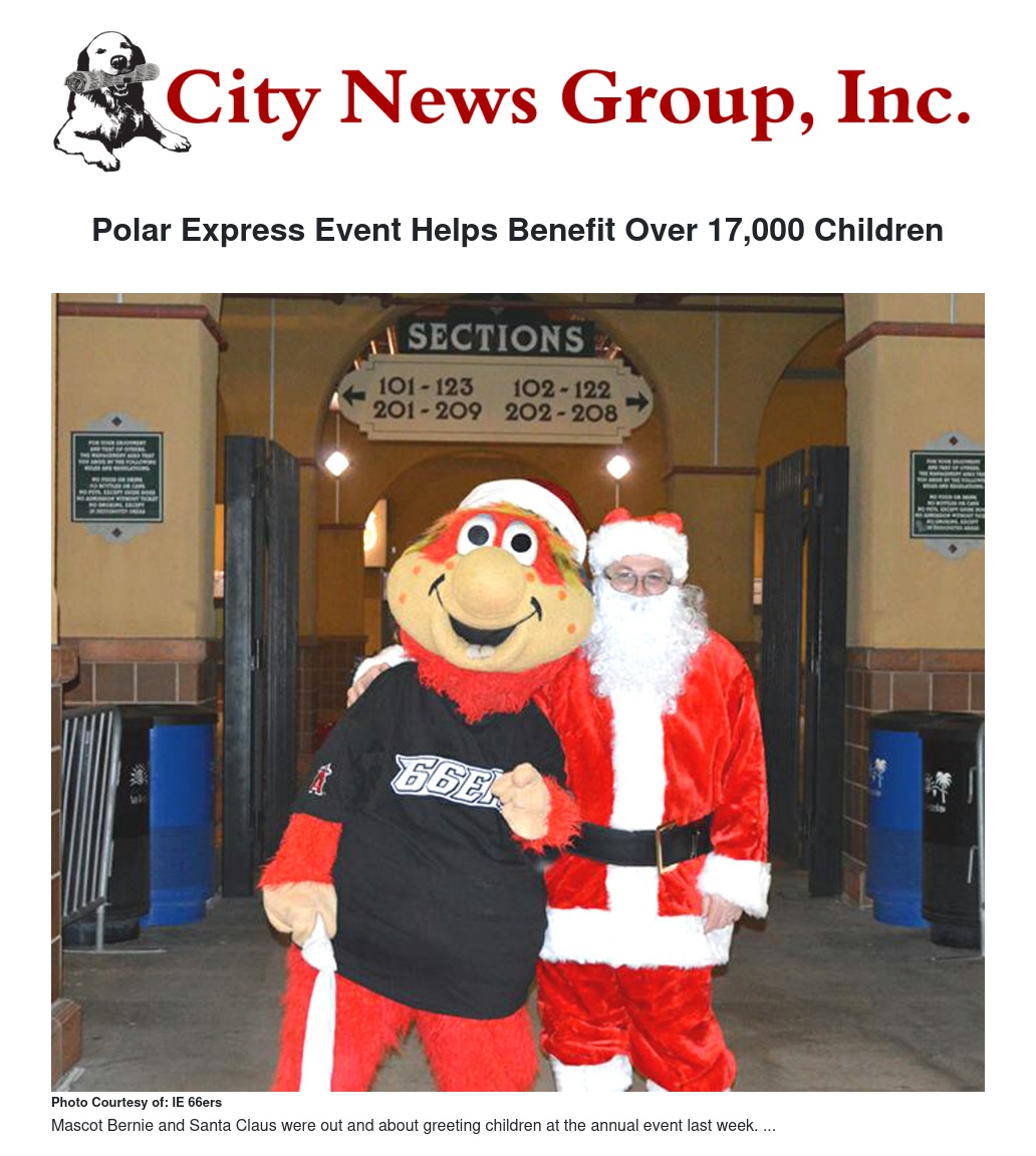 English talked about the reasons the team have made a point to connect with other community-based organizations. "The 66ers enjoy being a community gathering point for all events, not just baseball. So when we sat down with the City of San Bernardino and the San Bernardino Economic Development Agency we came up with the no-brainer of an idea to show the Polar Express free of charge to all people. This movie in particular really showcases what this time of year is all about."