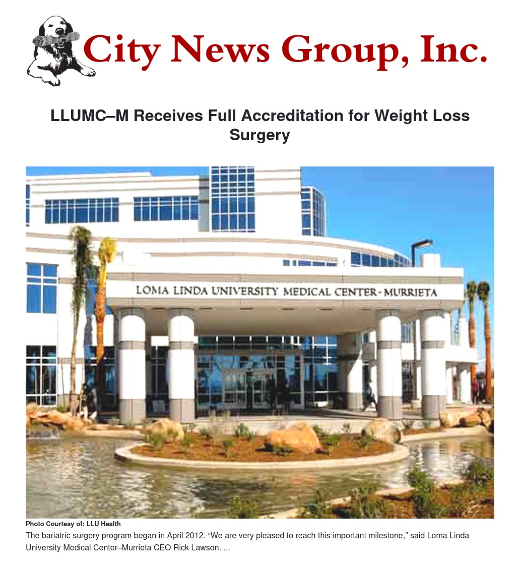 “We are very pleased to reach this important milestone so early in our growth as a hospital,” states LLUMC–Murrieta CEO, Rick Rawson. “Weight-loss surgery is an important service line that we believe helps us fulfill our mission to continue the teaching and healing ministry of Jesus Christ. Patients who receive this life-saving procedure can see their diabetes reversed and their risk of heart disease and cancer dramatically decline.”