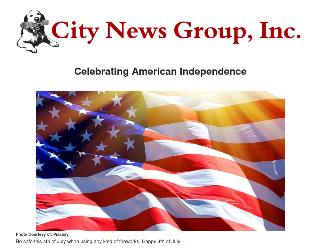 This 4th of July enjoy your time with family and friends, celebrate, and keep safe and healthy. Please refrain from drinking and driving and do not take part in the setting of fireworks if it is prohibited in your area. Check with your city to find out information on parades and festivities.