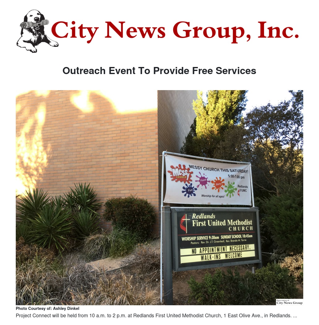 Project Connect will be held from 10 a.m. to 2 p.m. at Redlands First United Methodist Church, 1 East Olive Ave., in Redlands.