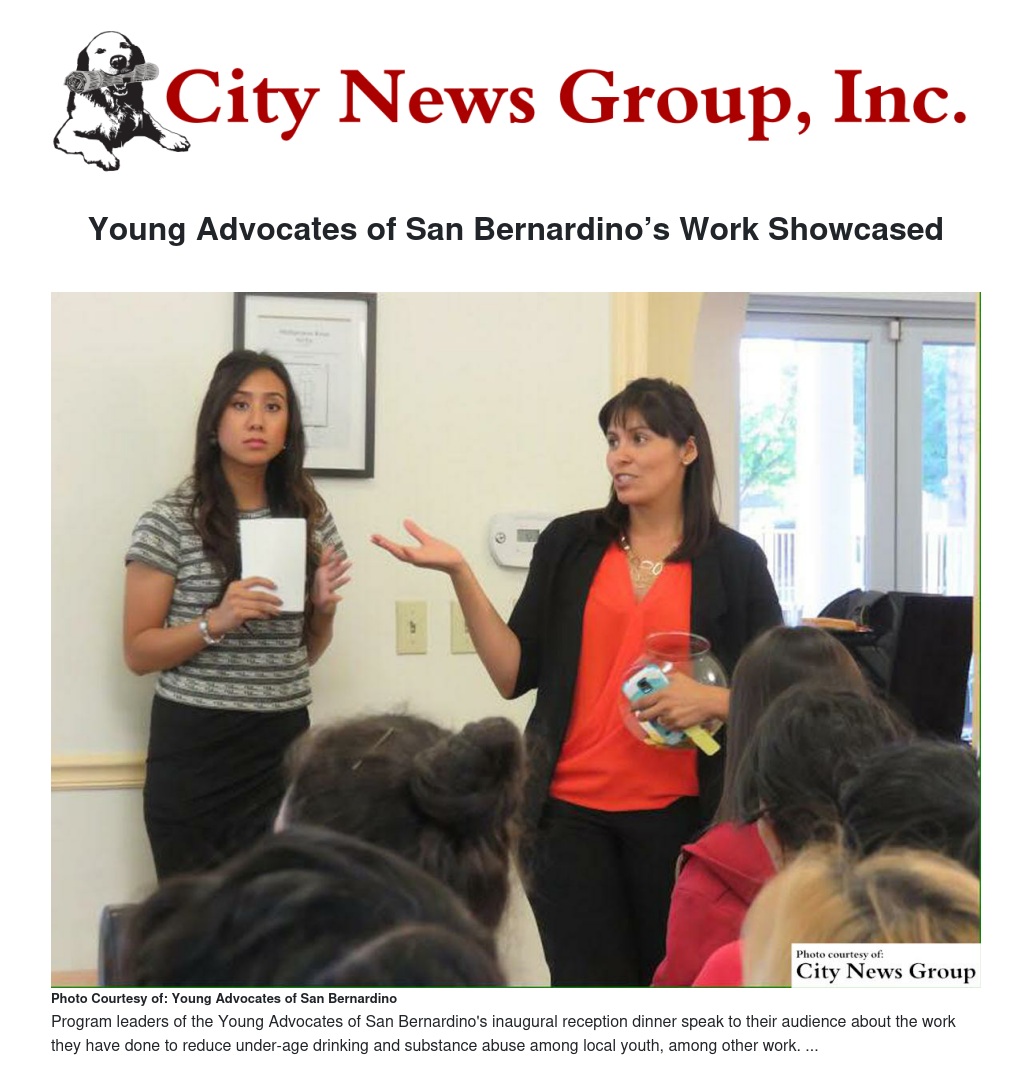 The free inaugural Young Advocates Reception Dinner, co-hosted with the Public Relations Student Society of America, aimed to bring awareness to the work the Young Advocates have done to reduce under-age drinking and substance abuse among San Bernardino’s youth, organizers said. For example, in 2014 and in May, the Young Advocates, consisting of CSUSB students, have conducted surveys of liquor stores to determine how many clerks actually check identification when alcohol was purchased.