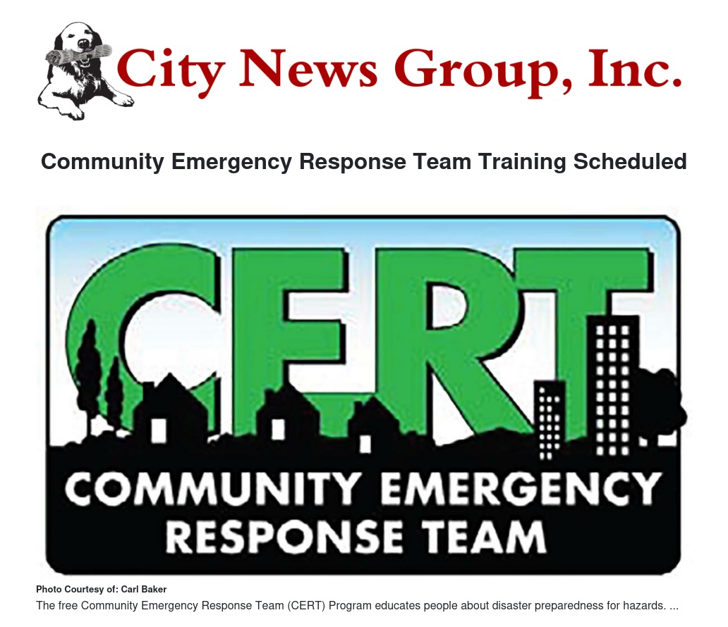 Community Emergency Response Team Training Scheduled by Carl Baker - City News Group, Inc.