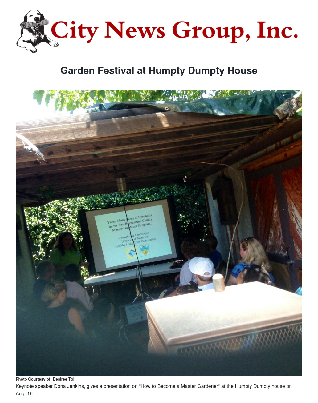 What began as a "disastrous" property, a life-changing accident, and an idea to help others, has sprouted into the Humpty Dumpty House, a newly licensed 501(c)(3) non-profit organization which hosted a garden festival as part of the UCCE Master Gardener program on Sunday, Aug. 10 in Loma Linda.