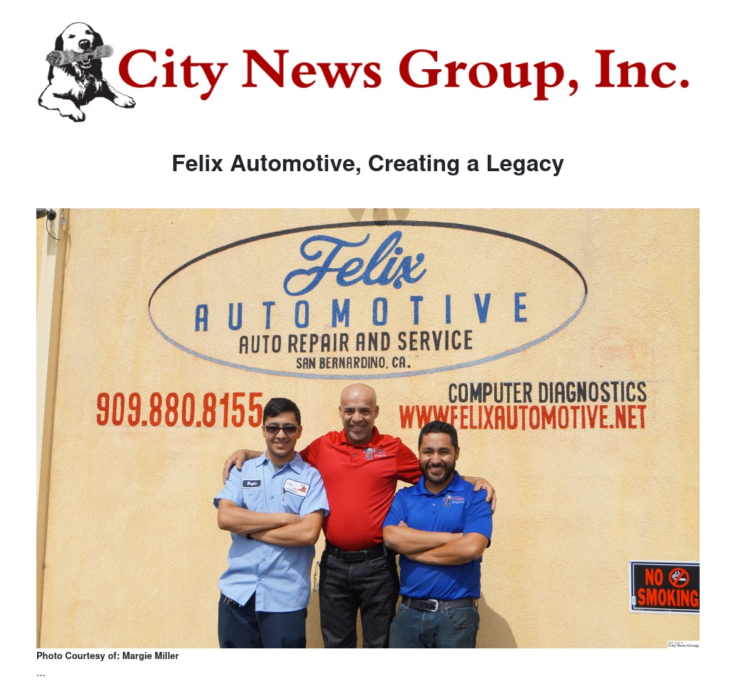 ALL>> For twenty-five years, Felix Automotive, has provided quality auto repair services to the San Bernardino community and beyond.