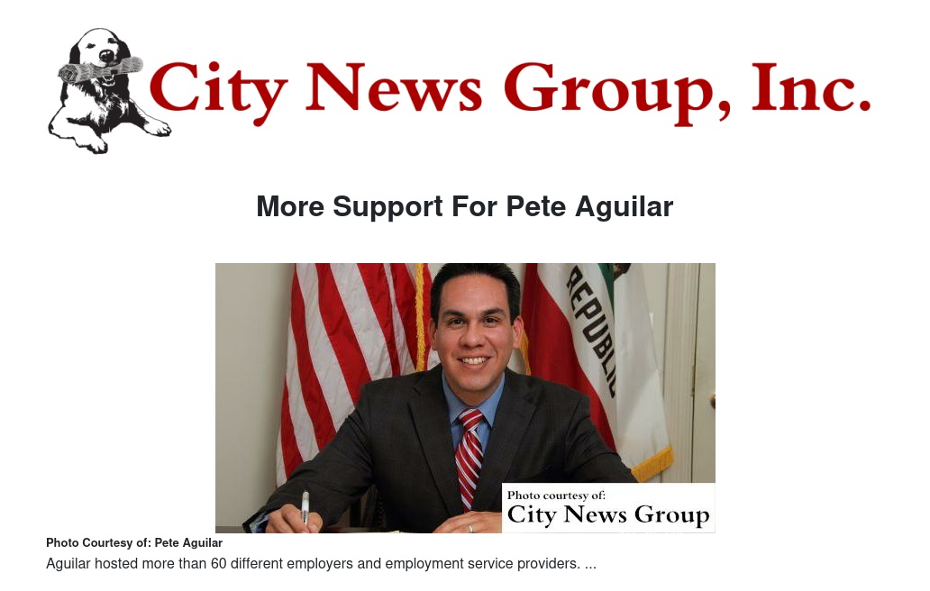 "The Redlands Police Officers Association is pleased to endorse Pete Aguilar. From his time as Mayor to his work in Congress, Congressman Aguilar has always supported our officers and recognizes the work we do in keeping our streets and neighborhoods safe," said Redlands POA president Patrick Leivas.