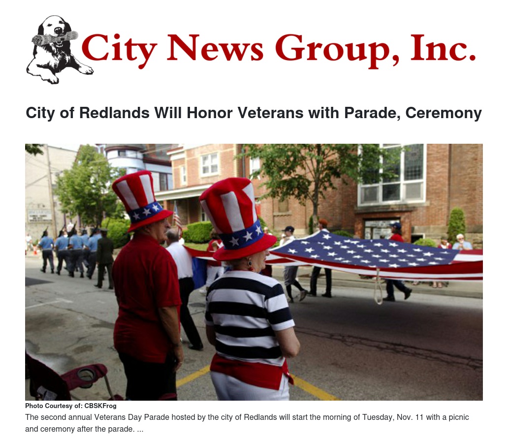 City of Redlands Will Honor Veterans with Parade, Ceremony