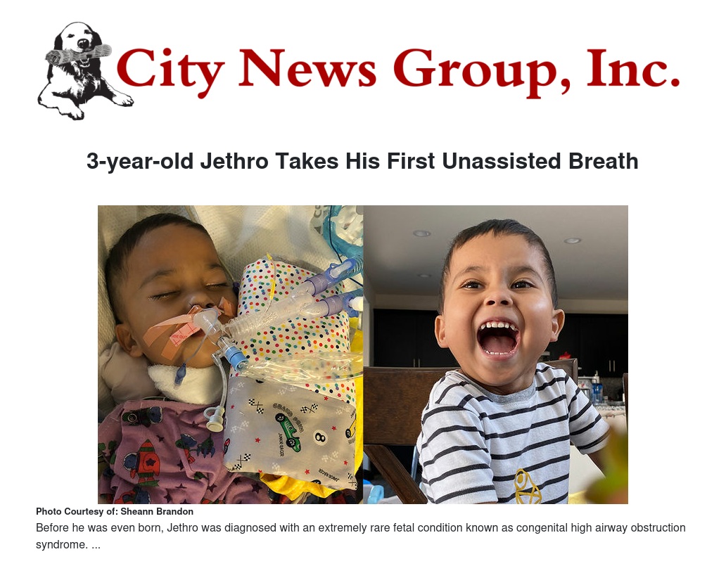 3-year-old Jethro Takes His First Unassisted Breath by Sheann Brandon - City News Group, Inc.