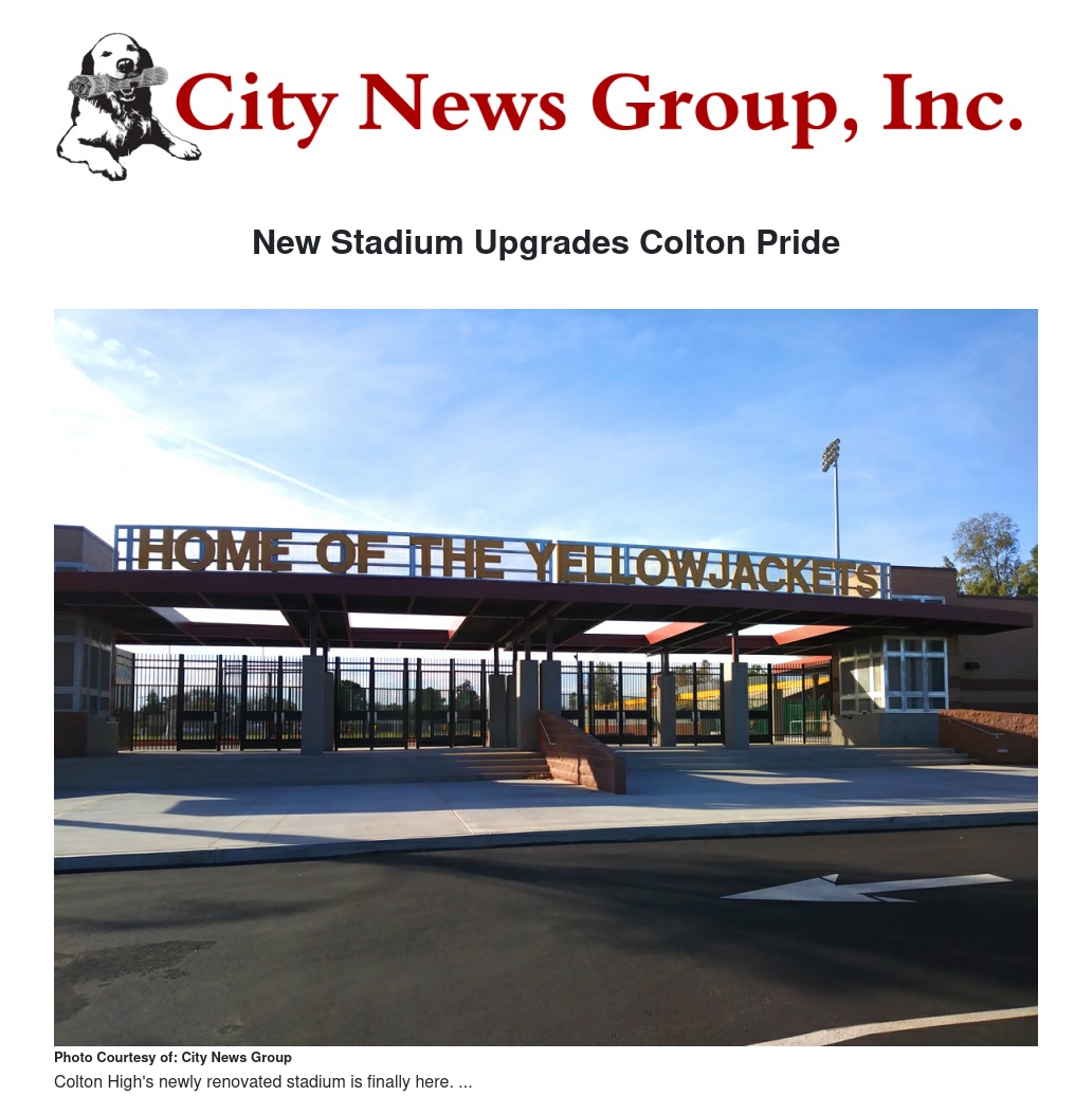 New Stadium Upgrades Colton Pride by Elena Macias - City News Group, Inc.