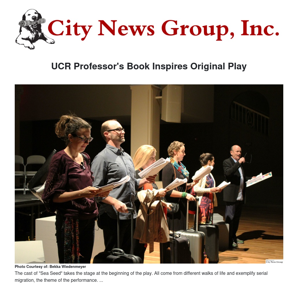 “Sea Seed,” a staged reading of a full play, was inspired by “Moving Matters paths of Serial Migration,” a book by Susan Ossman, an anthropology professor at University of California, Riverside, and Moving Matters Traveling Workshop.