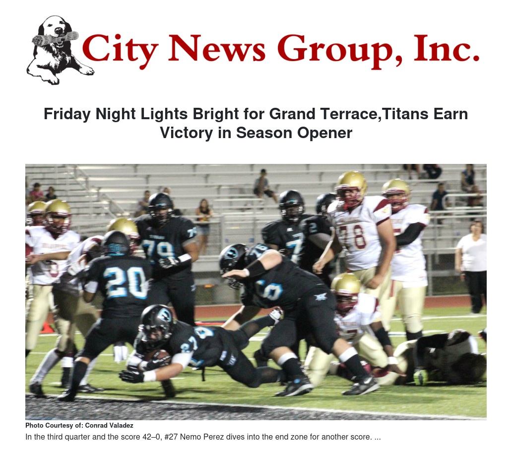 Friday Night Lights Bright for Grand Terrace,Titans Earn Victory in Season Opener