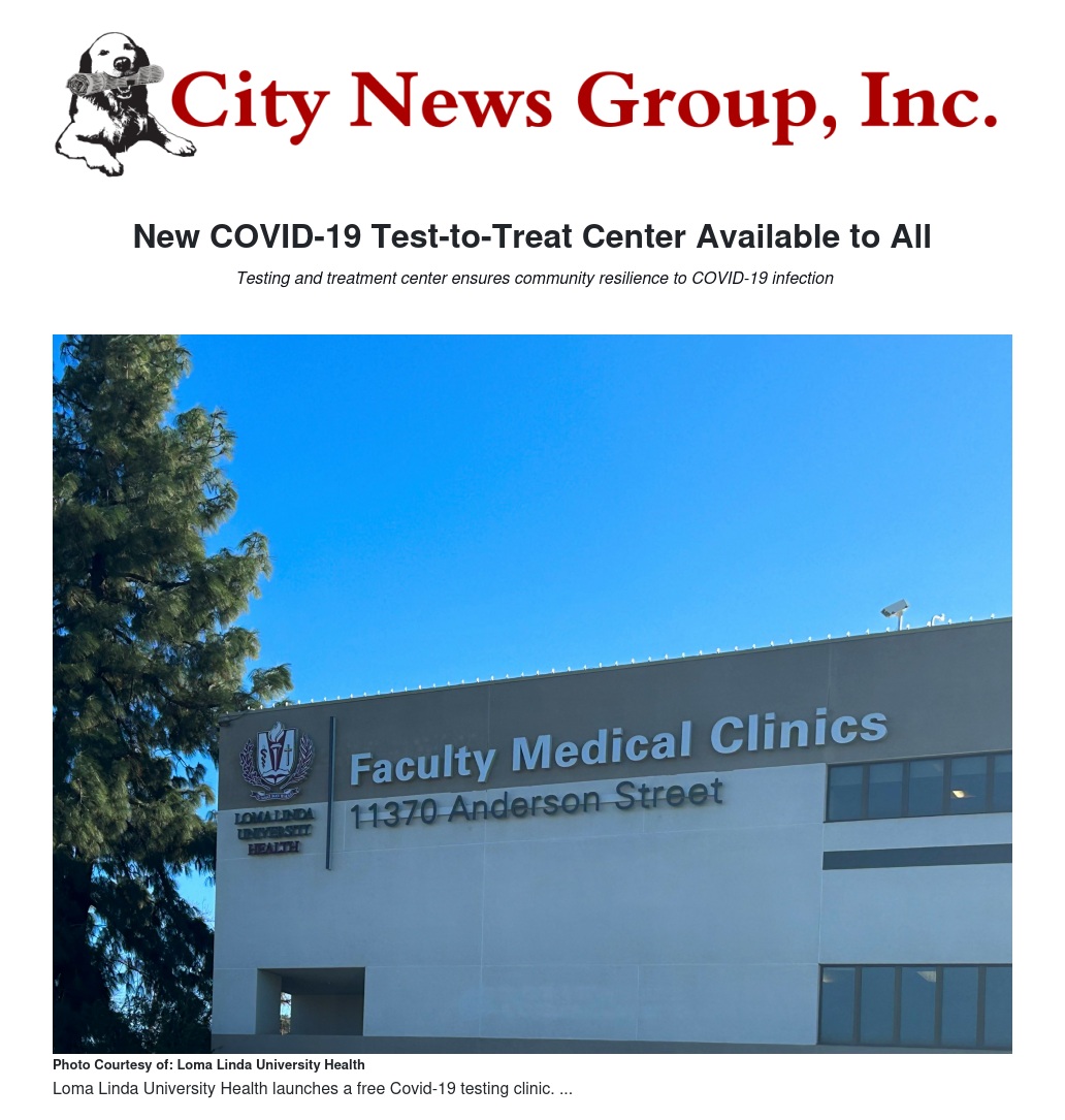 Loma Linda University Health has launched a free COVID-19 Test-to-Treat Clinic available for all community members, including individuals without insurance or U.S. citizenship. The clinic opened its doors Jan. 18 and anticipates continuing services through the summer.