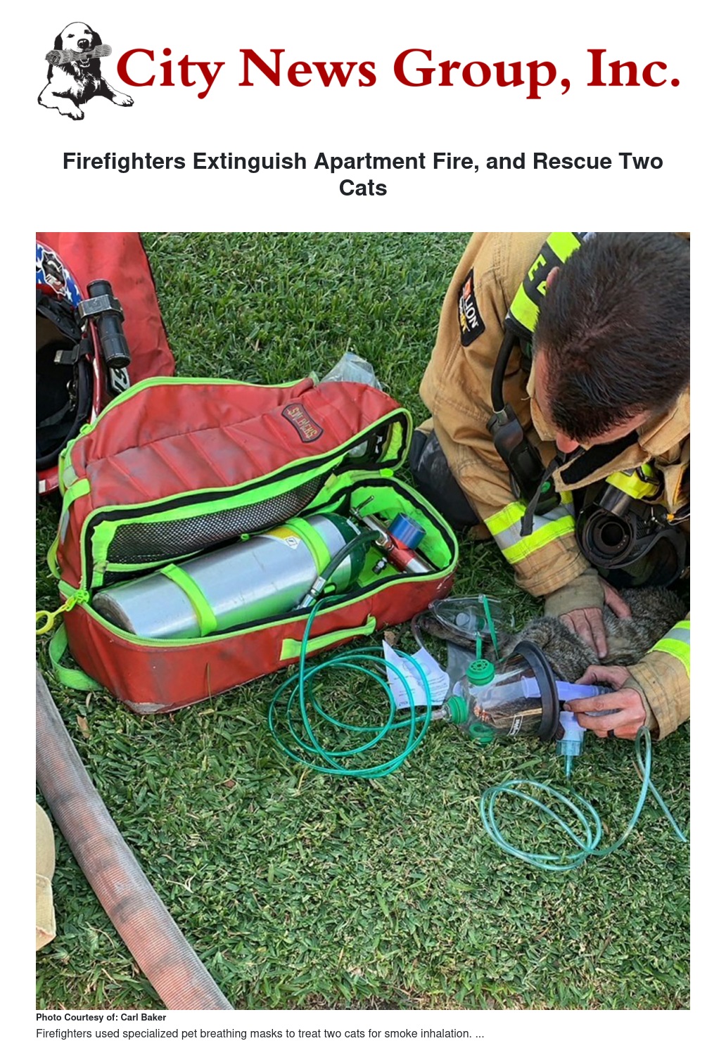 Two small cats were located inside the apartment. Fire personnel used a special pet oxygen mask to treat the cats on the scene for smoke inhalation. Both cats were transported by Redlands Animal Control to a local veterinarian for further evaluation. At the time of transport, both cats were in stable condition.