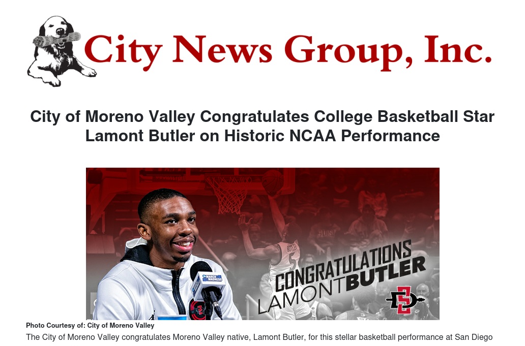 He is not the first Moreno Valley native to rise to stardom at SDSU—Clippers superstar Kawhi Leonard was also an Aztec. The City of Moreno Valley looks forward to what will come next in the promising basketball career of Lamont Butler.