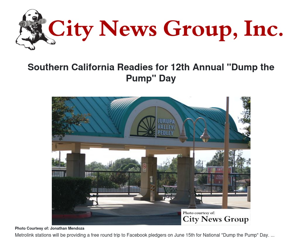 Southern California Readies for 12th Annual "Dump the Pump" Day by Michelle Caldera - City News Group, Inc.
