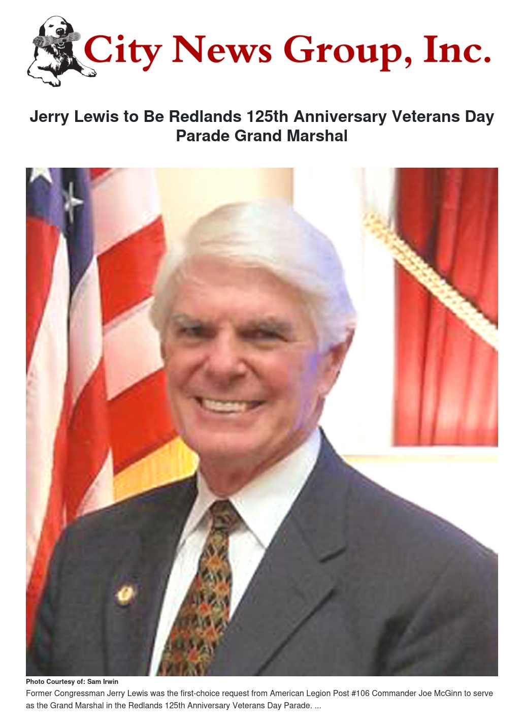 Jerry Lewis to Be Redlands 125th Anniversary Veterans Day Parade Grand Marshal