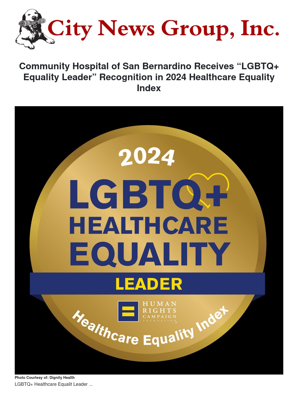 June 13, 2024 – Dignity Health - Community Hospital of San Bernardino (CHSB) has been recognized as an LGBTQ+ Healthcare Equality Leader in the Human Rights Campaign Foundation’s 2024 Healthcare Equality Index (HEI).