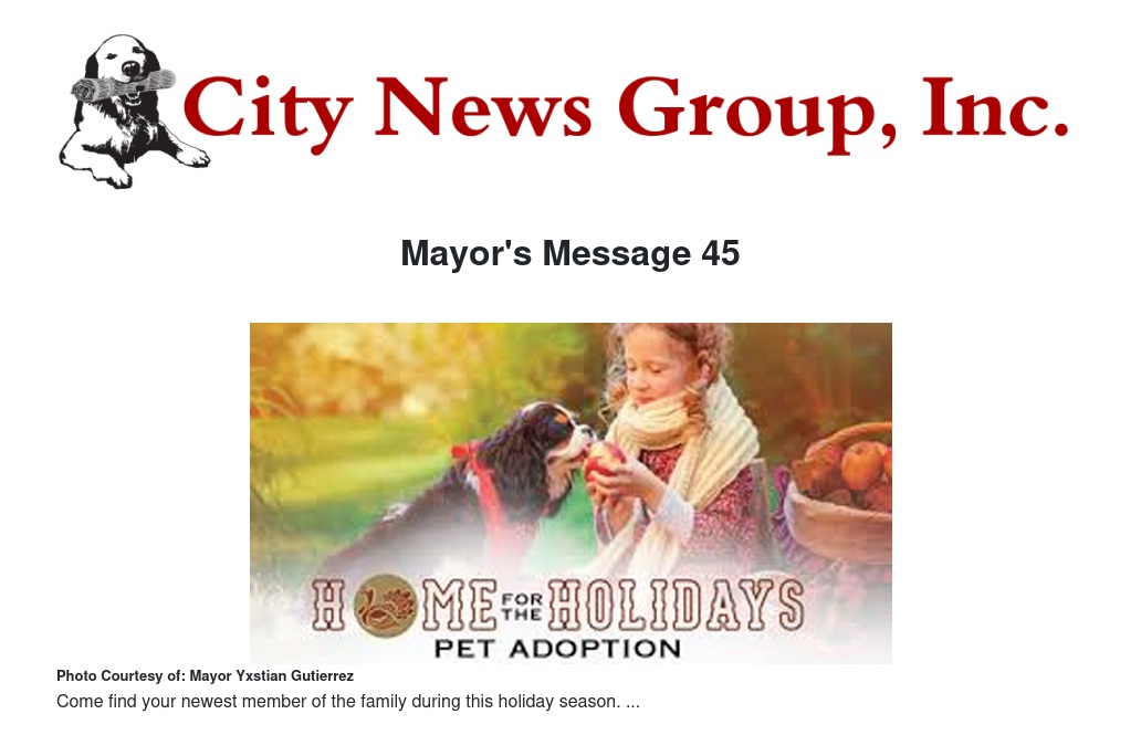 Mayor's Message 45 by Mayor Yxstian Gutierrez - City News Group, Inc.